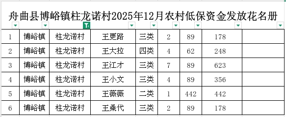 舟曲县博峪镇柱龙诺村2025年12月农村低保资金发放花名册