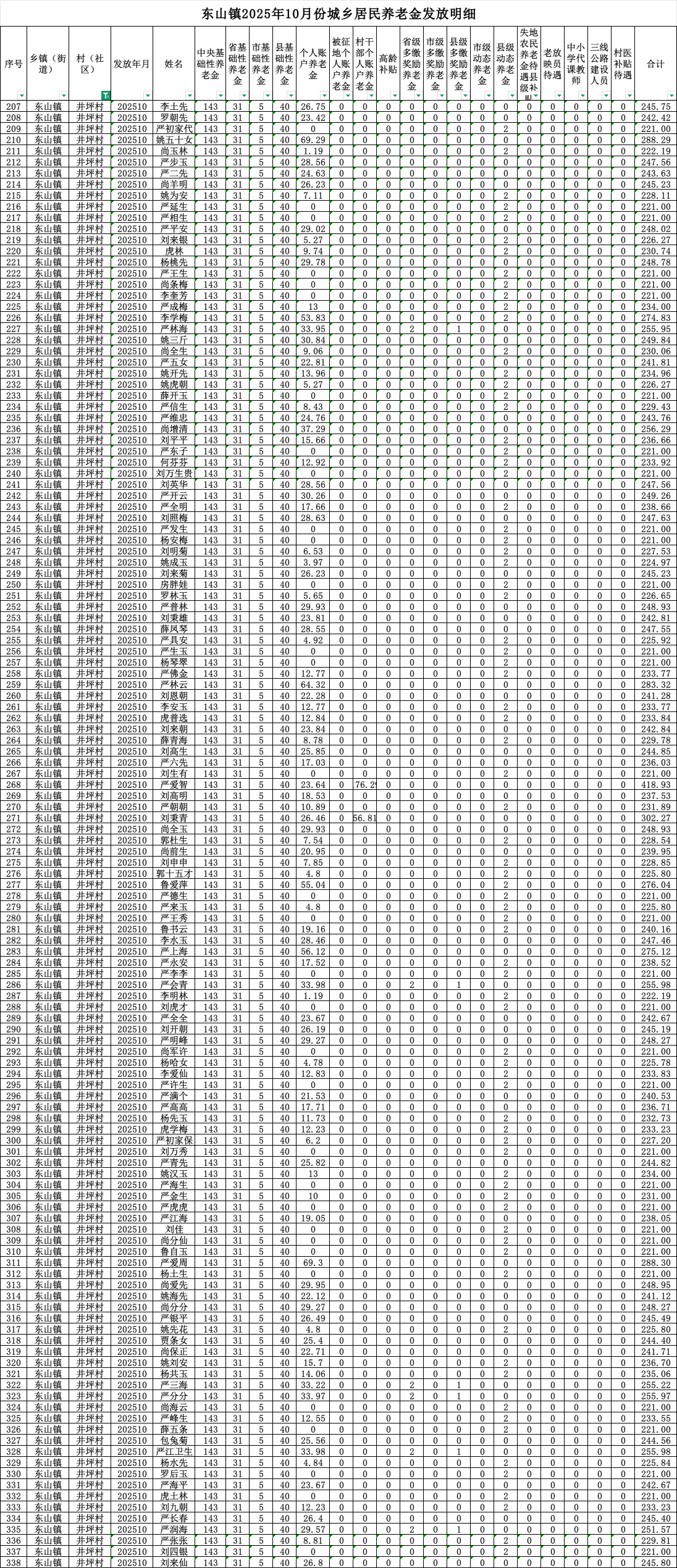 现将东山镇井坪村2025年10月份城乡居民养老金发放明细公示如下(详见附件)。
