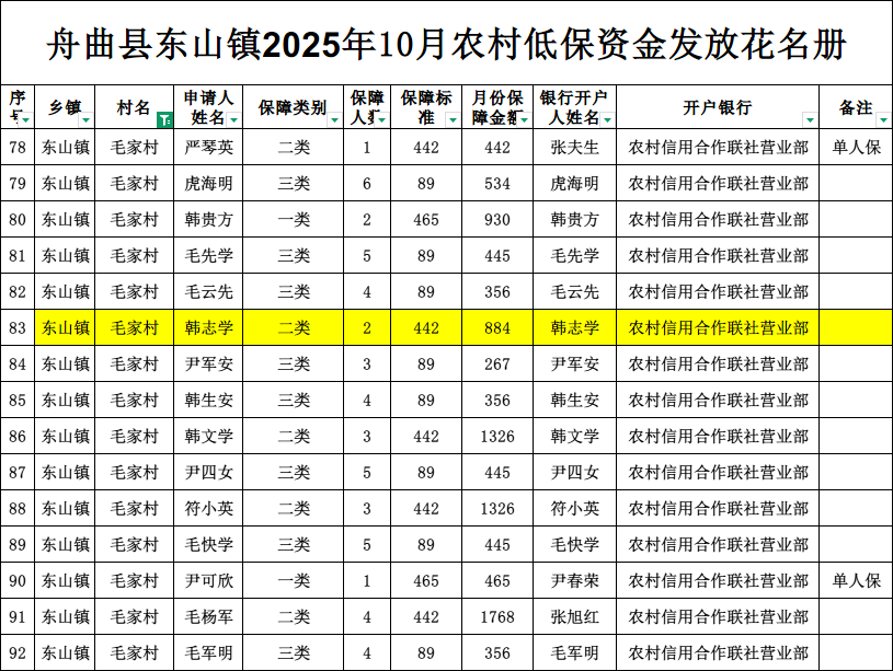 现将东山镇毛家村2025年10月农村低保资金发放花名册公示如下(详见附件)。