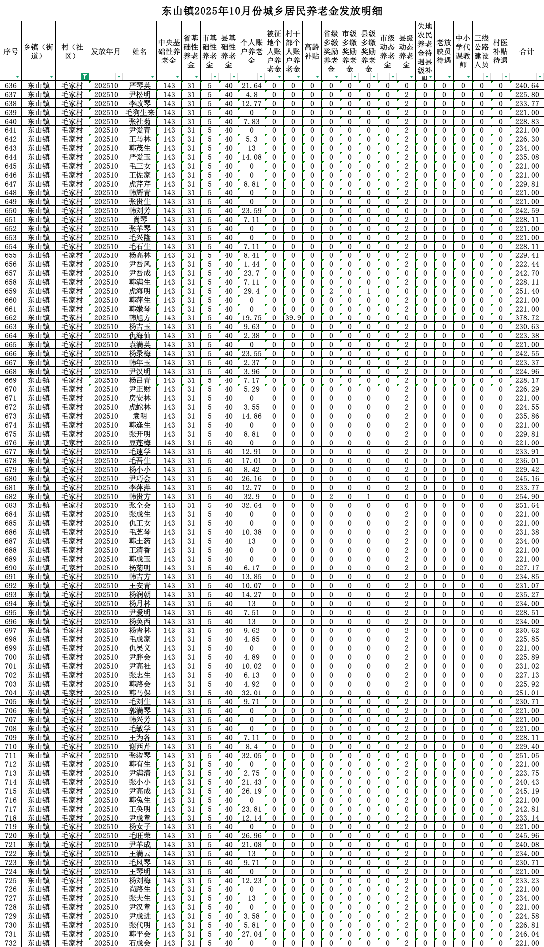 现将东山镇毛家村2025年10月份城乡居民养老金发放明细公示如下(详见附件)。