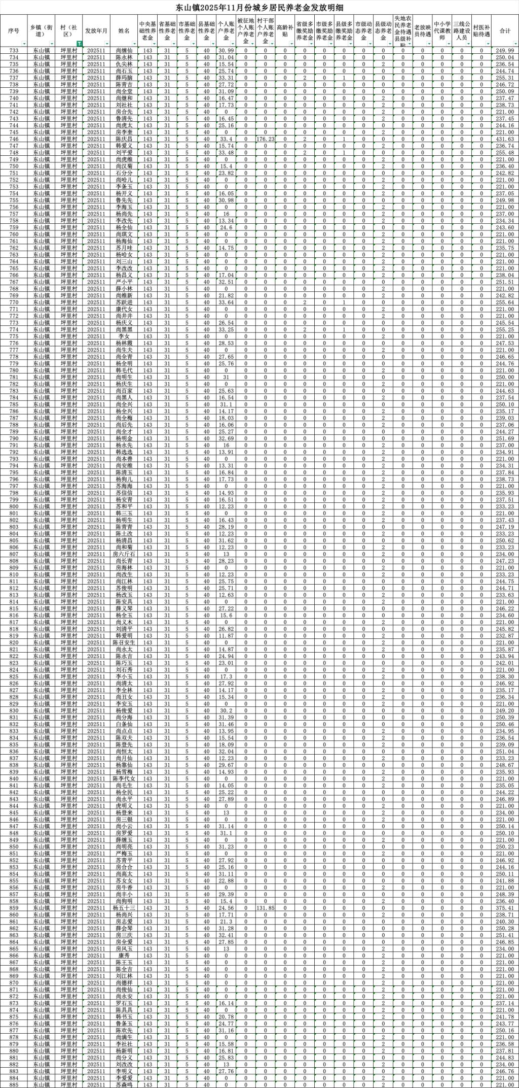 现将东山镇坪里村2025年11月份城乡居民养老金发放明细花名册公示如下(详见附件)。