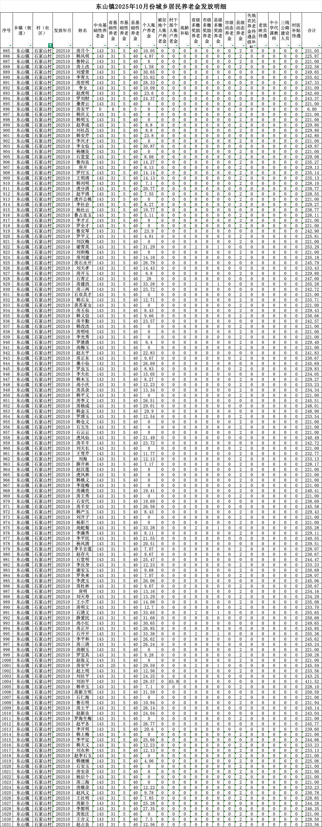现将东山镇石家山村2025年10月份城乡居民养老金发放明细公示如下(详见附件)。