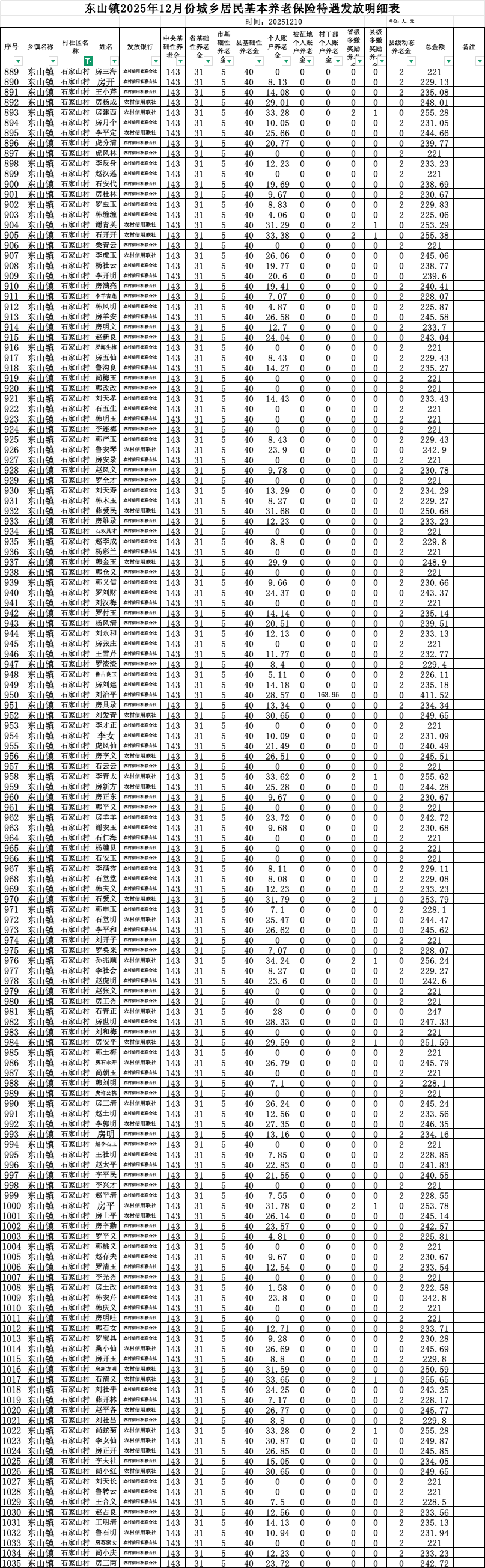 现将东山镇石家山村2025年12月份城乡居民基本养老保险待遇发放明细表公示如下(详见附件)。