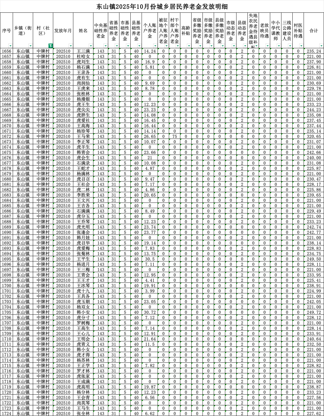 现将东山镇中牌村2025年10月份城乡居民养老金发放明细公示如下(详见附件)。