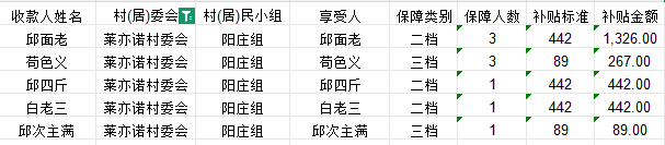 拱坝镇莱亦诺村2025年12月农村低保花名册