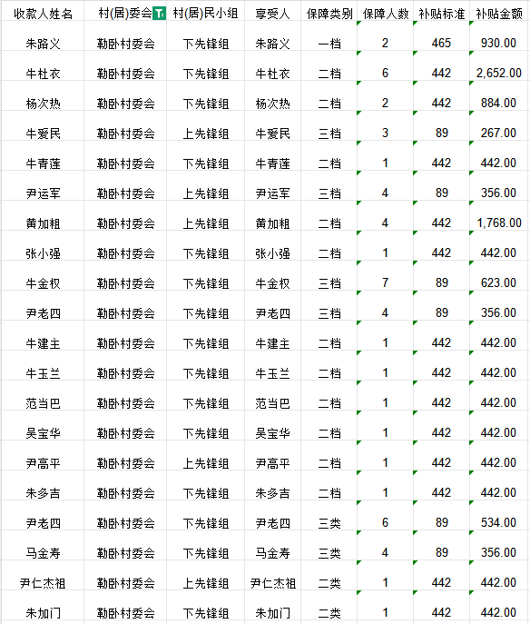 现将拱坝镇勒卧村2025年11月农村低保花名册公示如下。