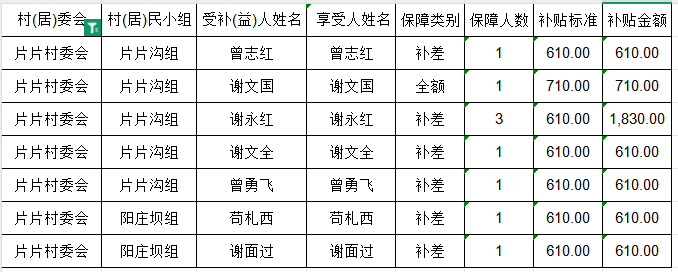 拱坝镇片片村2025年9月城市低保花名册