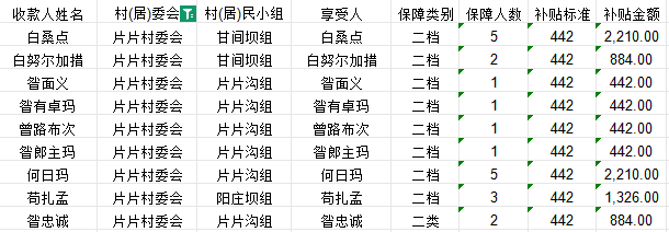 拱坝镇片片村2025年12月农村低保花名册