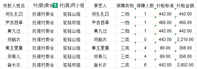 拱坝镇托诺村2025年10月农村低保花名册