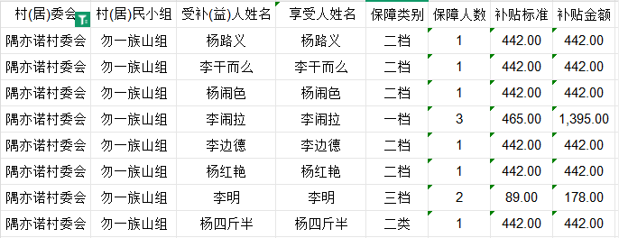 拱坝镇隅亦诺村2025年9月农村低保花名册