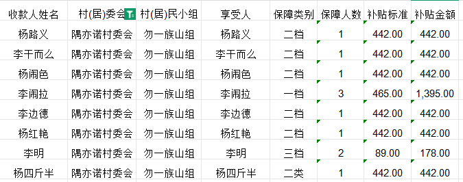 拱坝镇隅亦诺村2025年10月农村低保花名册