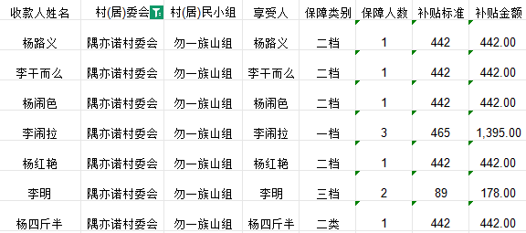 拱坝镇隅亦诺村2025年11月农村低保花名册