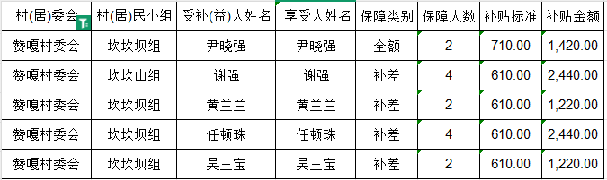 拱坝镇赞嘎村2025年9月城市低保花名册