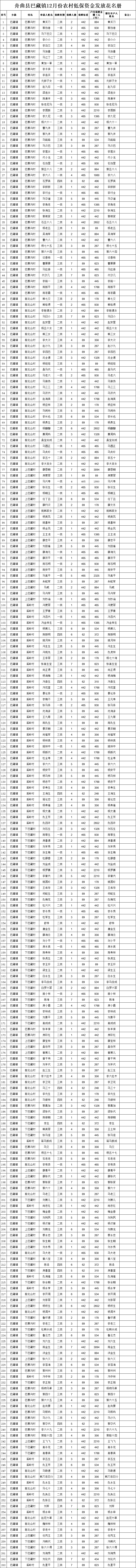 舟曲县巴藏镇12月份农村低保资金发放花名册