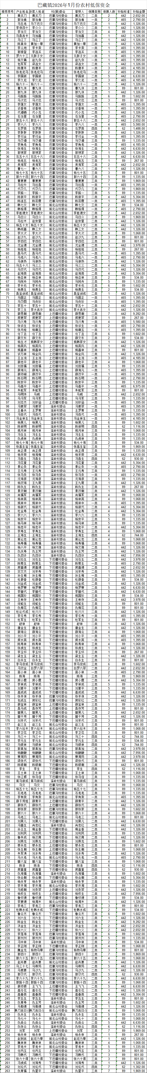 巴藏镇2026年1月份农村低保资金