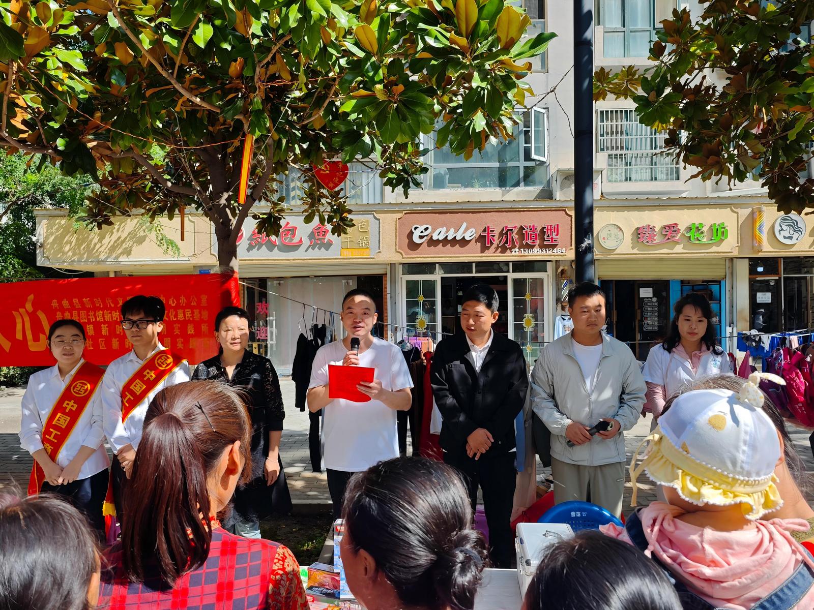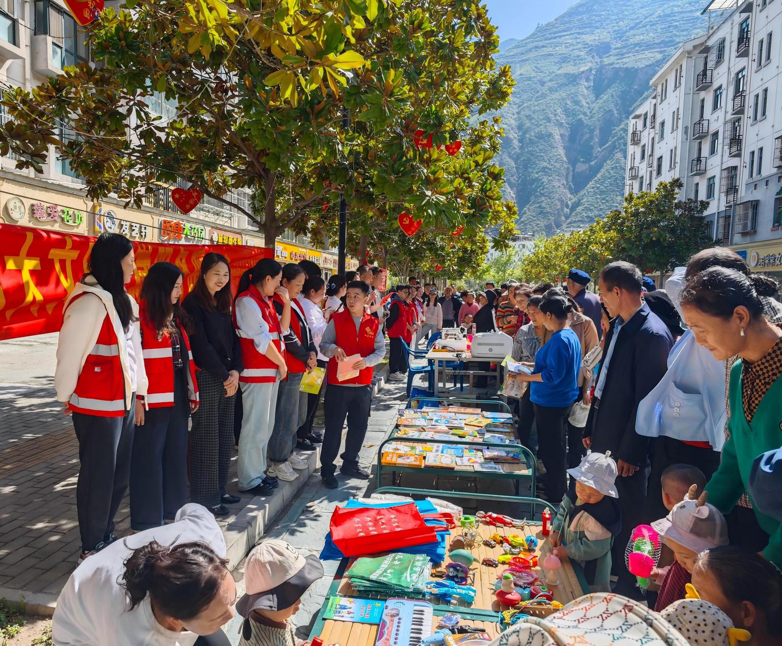 在国庆佳节来临之际,为深入推进社区精神文明建设,营造邻里互助、文明和谐的社区氛围,9月23日上午,舟曲县新时代文明实践中心联合舟曲县图书馆新时代文明实践文化惠民基地、县司法局、峰迭镇新时代文明实践所、水泉社区新时代文明实践站、舟曲县工商银行在水泉社区石板街开展“小集市大文明 微服务暖人心”主题文明集市活动。