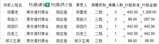 拱坝镇莱亦诺村2025年10月农村低保花名册
