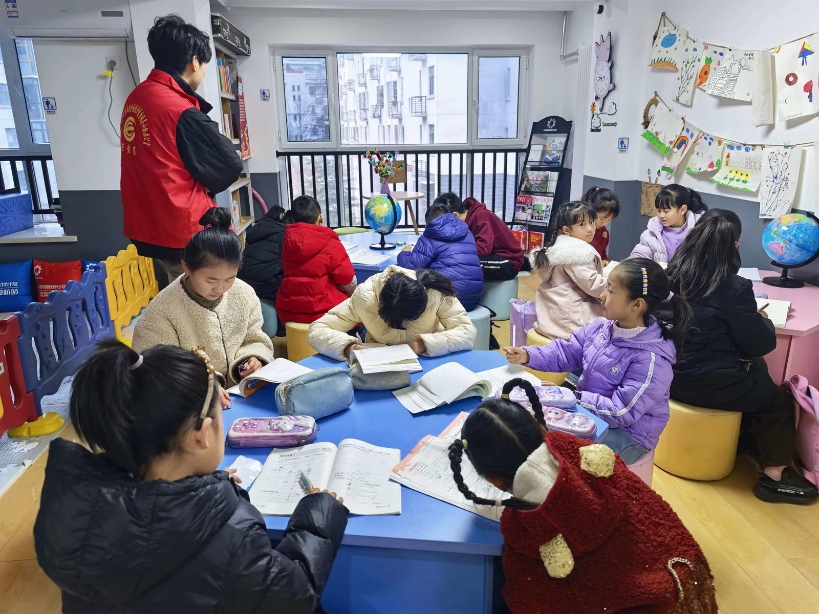 水泉社区合理配置学习课程,开设课业辅导、经典诵读、趣味科学、美术手工、音乐律动、多彩课间等教育课程。在课堂上,老师热心地为学生们检查语文、数学、英语等课程作业,对于学生们提出的问题,耐心地讲解说明,给学生们逐一做出讲解。