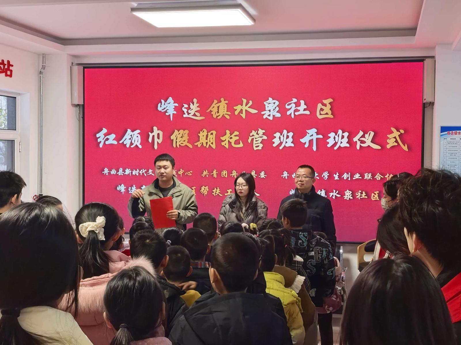 为切实解决假期儿童托管难题。1月20日,由峰迭镇水泉社区、共青团舟曲县委、舟曲县新时代文明实践中心、舟曲县大学生创业联合协会、峰迭新区安置区帮扶工作队、峰迭派出所、共同举办的“红领巾假期托管班”在峰迭新区正式开班。该托管班以“快乐学习、安全成长”为主题,致力于为辖区儿童提供充实、安全、有意义的寒假生活。
