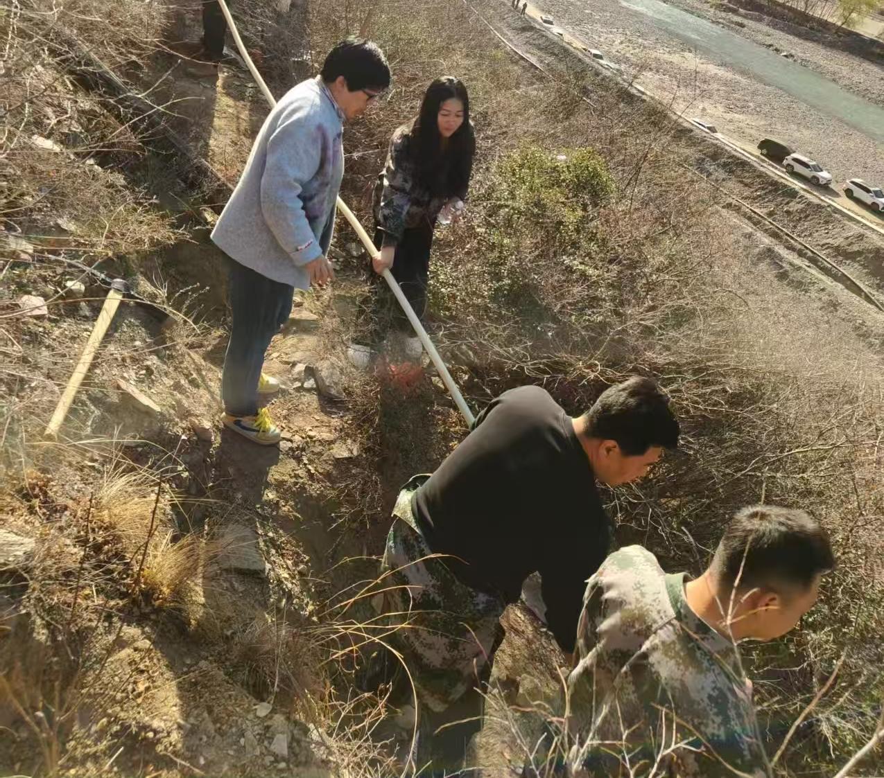 活动现场,各小组分工明确、协作有序,大家挥锹铲土、扶苗定植、培土压实、浇水保墒,严格按照栽植技术标准规范操作。全体人员热情高涨、干劲十足,领导干部带头示范,林业站技术人员现场指导,村干部、护林员与志愿者通力配合,处处是忙碌的身影,洋溢着团结协作共建绿色家园的浓厚氛围。