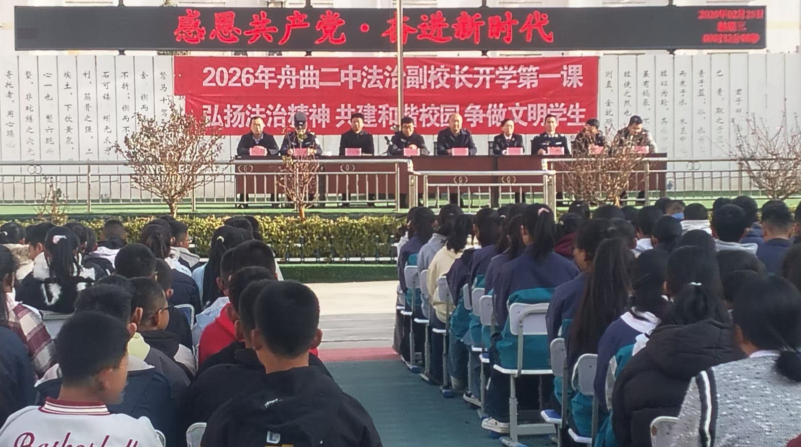 2月25日,立节镇联合县人民法院、舟曲二中、立节派出所、司法所、市场监督管理所等多部门,开展法治副校长“开学第一课”宣传活动,并同步开展校园及周边安全专项检查,切实把习近平法治思想落到实处,深入推进青少年法治宣传教育,不断增强中小学生法治观念与自我保护意识,全力筑牢校园及周边安全防线。