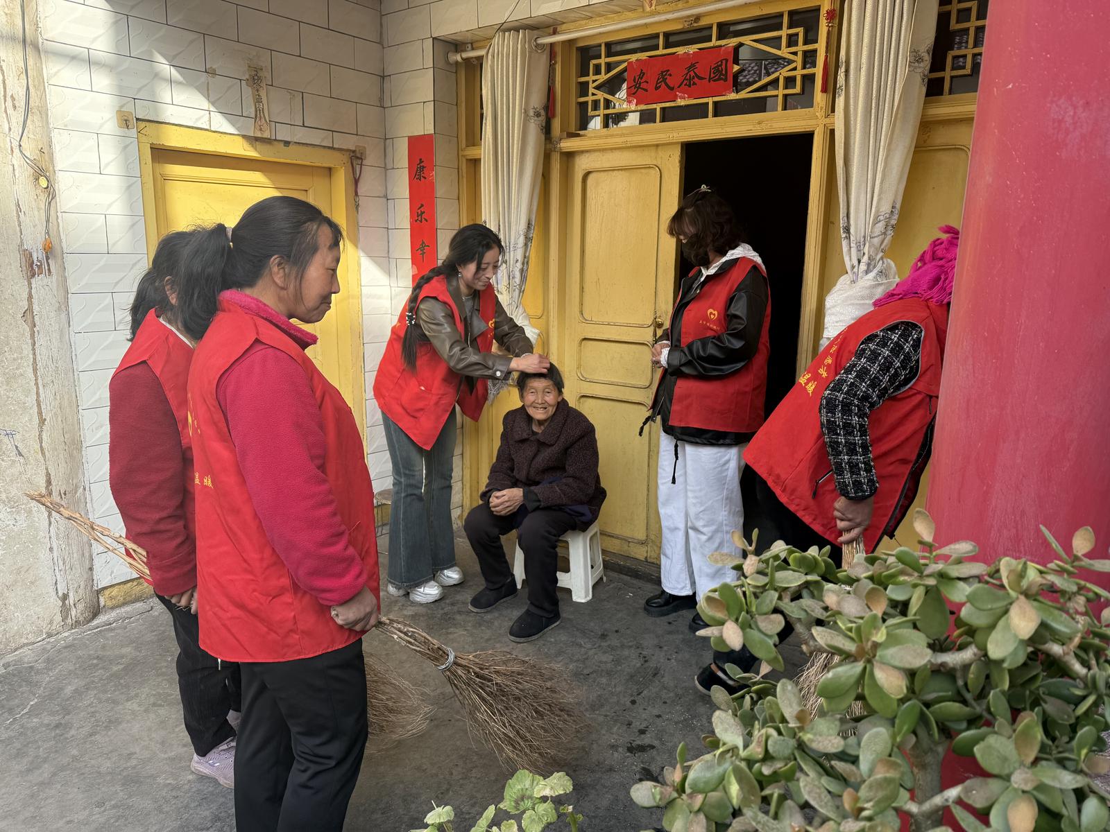 活动中,党员志愿者精准对接群众需求,分赴各村组开展多元化服务。在敬老爱老服务点,志愿者为老人免费理发,细致修剪发丝,让老人们精神面貌焕然一新。针对独居老人,志愿者上门打扫卫生、换洗晾晒衣物,陪老人拉家常,送上暖心关怀。