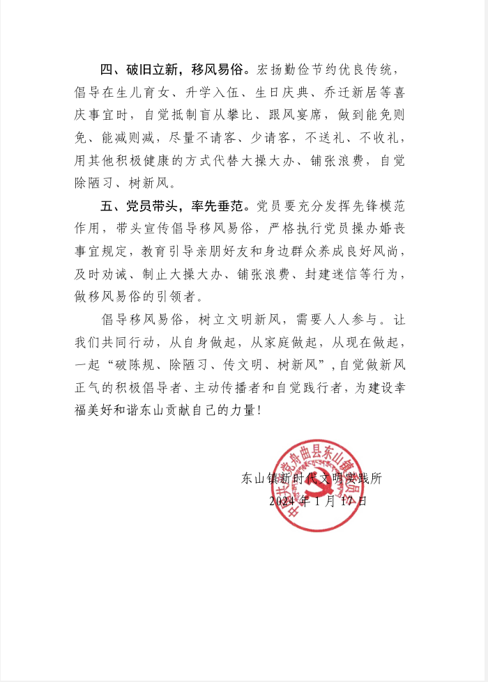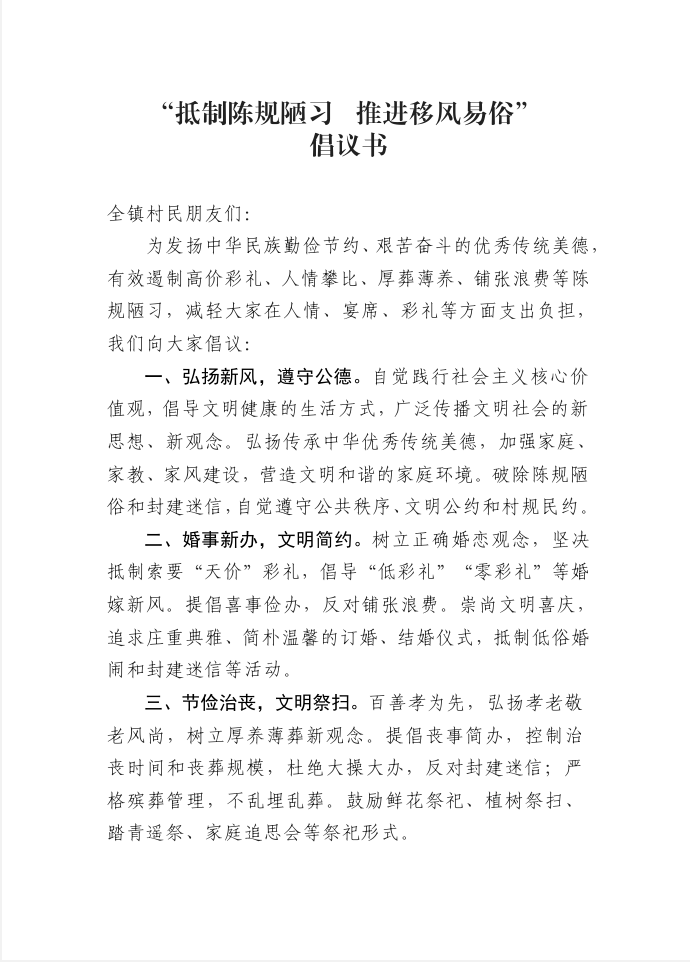“抵制陈规陋习 推进移风易俗倡议书