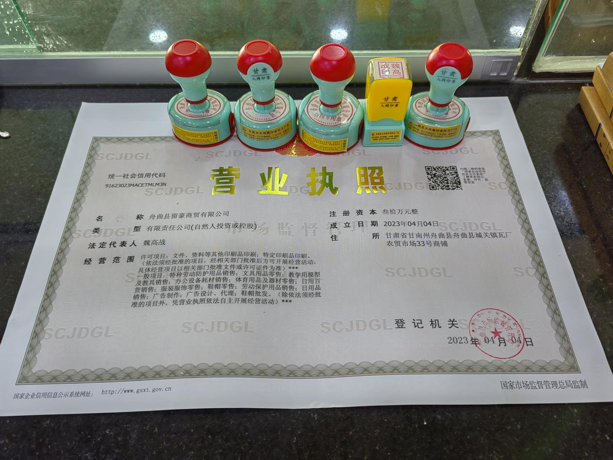 ----舟曲县市场监管局免费为新办企业刻制印章服务
