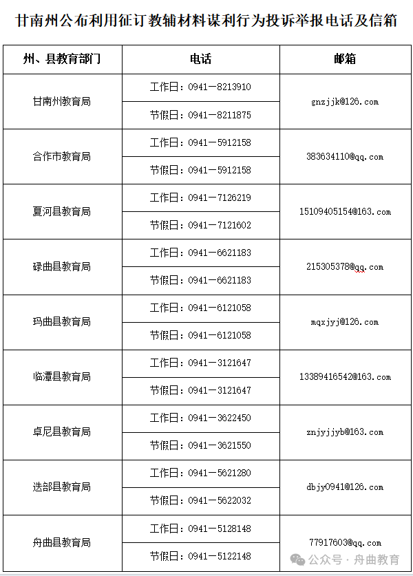 (八)坚持畅通问题反馈渠道。各地教育行政部门和学校要通过门户网站、微信公众号、学校公示栏等多种途径,公开违规征订教辅材料举报电话和邮箱,畅通问题反馈渠道,接受学生、家长和社会各界监督。