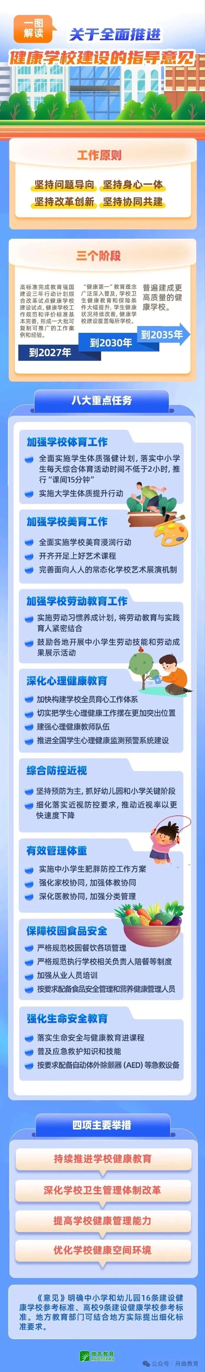 近日,教育部印发了《关于全面推进健康学校建设的指导意见》。这份文件为全国健康学校的建设描绘了清晰的“路线图”和“施工图”,明确了三个阶段的建设目标、八项重点任务、四项主要举措以及两个参考标准。从夯实基础到形成规模,再到全面建成,每一步都关乎孩子们的成长环境。接下来,就请大家跟随小编,一起来了解这份指导意见的核心亮点吧!