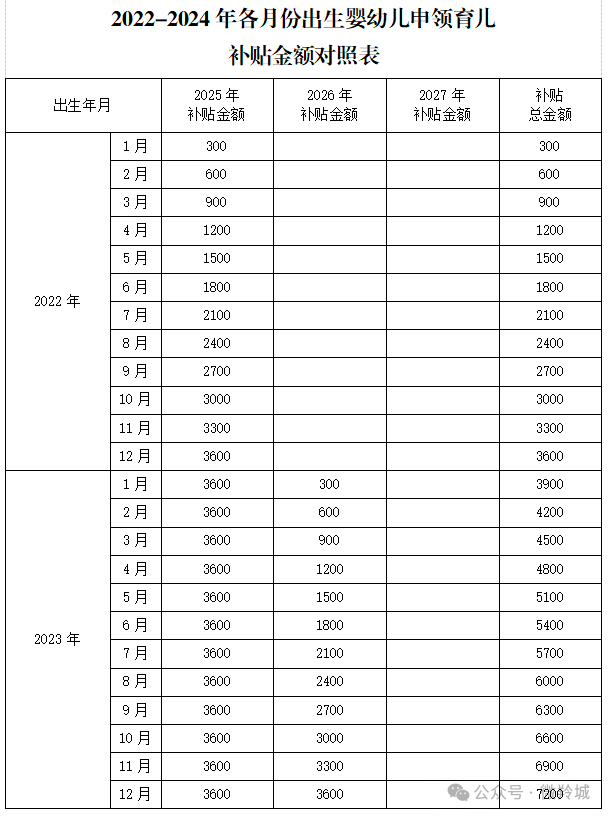 2022年出生的宝宝:可申领1次补贴,必须在2025年提出申请,截止时间为2025年12月31日。