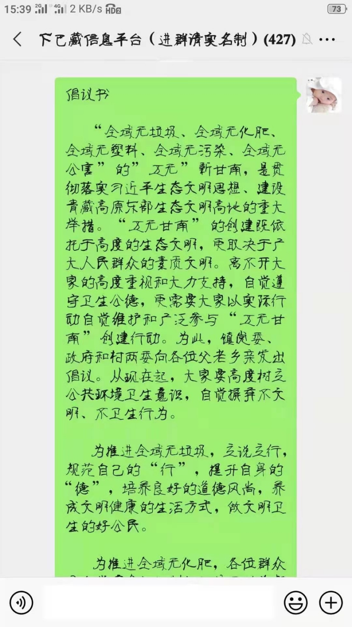 通过多种宣传形式,不断提升广大群众保护环境的意识,逐步改变不良习惯,让广大群众自觉参与到行动当中,真正从根本上改变农村环境面貌,营造浓郁的社会氛围,形成人人参与的良好环境,纵深推动“五无甘南·美丽舟曲”行动。